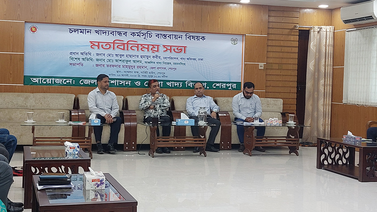 আবুল হাছানাত হুমায়ুন কবীর বলেন, সরকার প্রতিবছর পর্যাপ্ত খাদ্য মজুত রাখে যাতে যে কোনো দুর্যোগকালীন পরিস্থিতি মোকাবিলা করা যায়, বাজার নিয়ন্ত্রণ রাখা সম্ভব হয় এবং কৃষকরা ন্যায্য মূল্য পান। চলতি বছরের ১৭ আগস্ট থেকে সারা দেশে খাদ্যবান্ধব কর্মসূচির চাল বিতরণ শুরু হয়েছে, যা টানা ছয় মাস চলবে। এ কর্মসূচির আওতায় ৫৫ লাখ কার্ডধারী উপকারভোগী রয়েছেন। শেরপুরে যদি কার্ডধারীর সংখ্যা বাড়ানোর প্রয়োজন হয়, তবে জেলা প্রশাসক মন্ত্রণালয়ের কাছে আবেদন করলে তা বিবেচনা করা হবে।