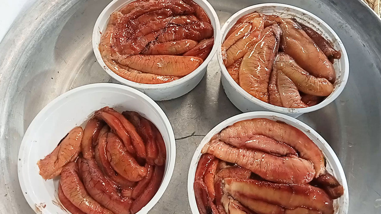 রোববার (২৪ আগস্ট) দুপুরে সরেজমিনে দেখা যায়, আড়তগুলোর কর্মচারীরা নরম ইলিশ কেটে লবণ দিয়ে নোনা ইলিশ তৈরি করছেন। মাছের ডিমগুলো আলাদা করে প্লাস্টিকের বক্সে করে সংরক্ষণ করছেন। তবে ঘাটে ১০ থেকে ১৫টি লোনা ইলিশ ও ডিমের আড়ত থাকলেও মাত্র দুটি আড়ত চালু আছে। তাও আবার ইলিশ সরবরাহ কম থাকায় অল্প কিছু পরিমাণ মাছ কাটতে দেখা গেছে। ফলে ডিমের দাম চড়া হওয়ার ক্রেতাদের খালি হাতে ফিরে যেতে দেখা গেছে।