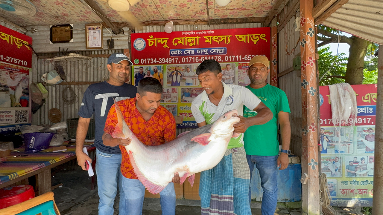 চান্দু মোল্লা বলেন, ২৫ কেজি ৩০০ গ্রাম ওজনের পাঙাশ মাছটি প্রথমে আমি কিনি। পরে প্রতি কেজিতে ৫০ টাকা লাভে ঢাকার এক ব্যবসায়ীর কাছে ৬৭ হাজার টাকায় বিক্রি করে দিই। দুপুরেই মাছটি ডেলিভারি দেওয়া হয়েছে।