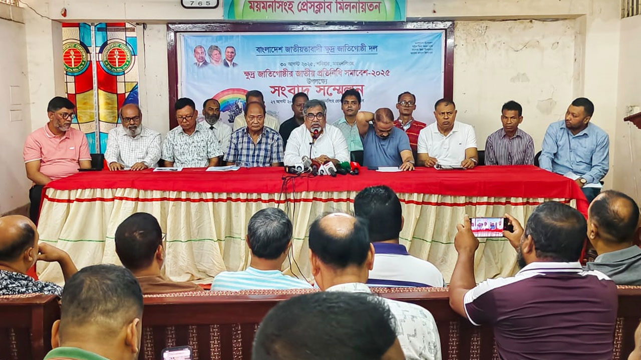বুধবার (২৭ আগস্ট) দুপুরে ময়মনসিংহ প্রেসক্লাবে আগামী ৩০ আগস্ট ক্ষুদ্র জাতিগোষ্ঠীর জাতীয় প্রতিনিধি সম্মেলন-২০২৫ উপলক্ষ্যে আয়োজিত এক সংবাদ সম্মেলনে তিনি এসব কথা বলেন।