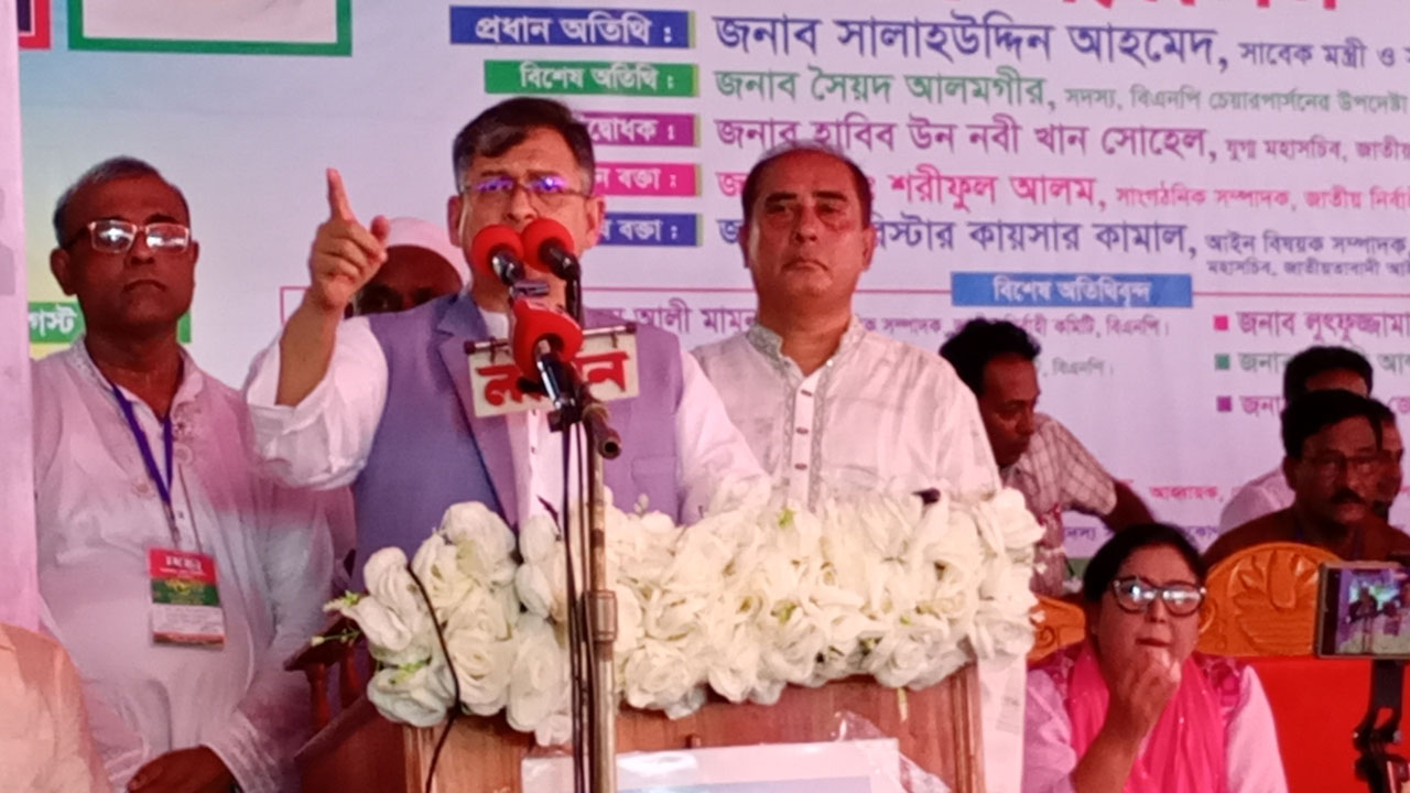 সালাহউদ্দিন আহমেদ বলেন, যারা আজকে পিআর পদ্ধতিতে ইলেকশন না হলে নির্বাচন না করার ঘোষণা দিচ্ছেন। যারা বলছেন- পিআর চাই, উচ্চকক্ষে নিম্নকক্ষে, তারা ভিন্ন উদ্দেশ্য নিয়ে কথা বলছেন। গতকালকে একটি রাজনৈতিক দলের সংবাদ সম্মেলনে লক্ষ্য করলাম- যদি পিআর পদ্ধতিতে ইলেকশন না হয় তারা নাকি বাংলাদেশে নির্বাচন করতে দেবে না। আমি আজকে আপনাদের সামনে ঘোষণা দিচ্ছি- আগামী ২০২৬ ইংরেজি সনের ফেব্রুয়ারির প্রথমার্ধে রমজান শুরু হওয়ার সপ্তাহখানেক আগে বাংলাদেশের সংসদ নির্বাচন হবে ইনশাআল্লাহ। সেই নির্বাচন কেউ রুখতে পারবে না, সেই শক্তি কারও নেই, একমাত্র আল্লাহ রাব্বুল আলামিন ছাড়া।