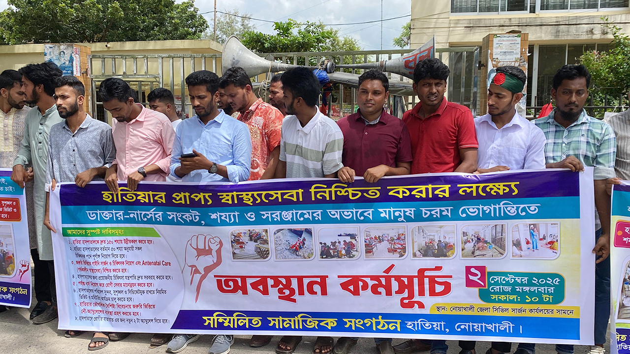 মঙ্গলবার (২ সেপ্টেম্বর) সকালে সম্মিলিত সামাজিক সংগঠনের ব্যানারে এই কর্মসূচি পালন করা হয়। এতে অংশগ্রহণকারীরা বলেন, হাতিয়ার ৫০ শয্যার হাসপাতালসহ ইউনিয়ন পর্যায়ের স্বাস্থ্যকেন্দ্রগুলোতে চিকিৎসকের পদ বহুদিন ধরে শূন্য। ফলে সাধারণ মানুষ ন্যূনতম চিকিৎসাসেবা থেকেও বঞ্চিত হচ্ছেন।
