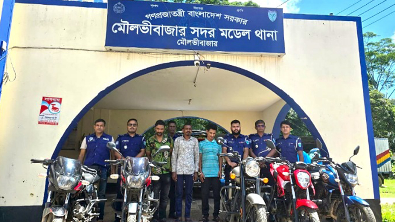 মৌলভীবাজারে আন্তঃজেলা মোটরসাইকেল চোরচক্রের তিন সদস্যকে গ্রেপ্তার করেছে পুলিশ। এ সময় একটি রয়েল এনফিল্ডসহ মোট পাঁচটি চোরাই মোটরসাইকেল উদ্ধার করা হয়েছে।
