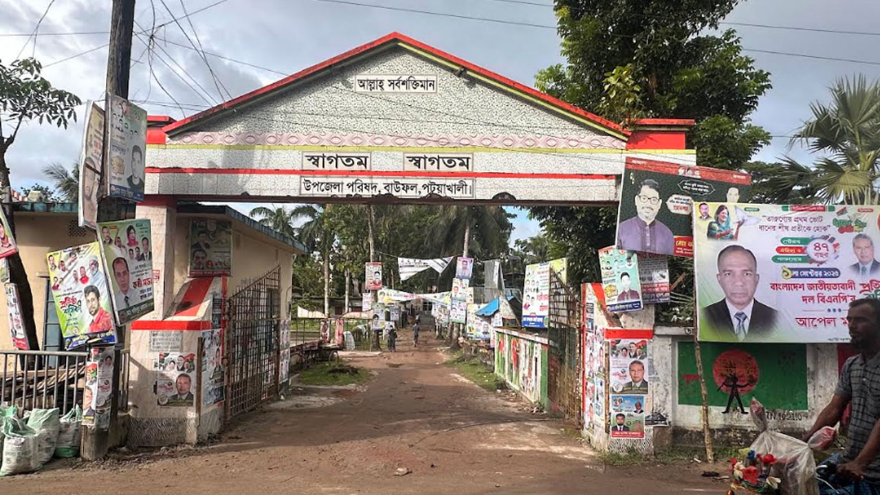 পটুয়াখালীর বাউফল উপজেলা পরিষদের প্রবেশ পথে চোখে পড়ে সারি সারি ব্যানার-ফেস্টুন। প্রথম দেখায় মনে হবে এটি কোনো সরকারি কার্যালয় নয়, যেন রাজনৈতিক পার্টি অফিস।
