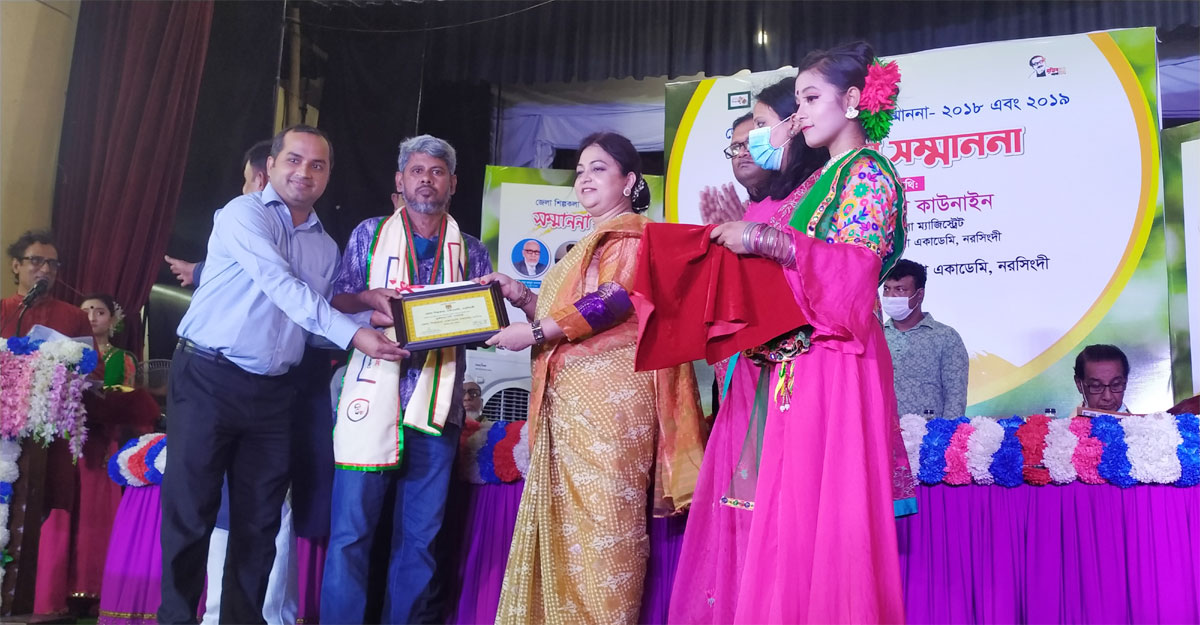জেলা শিল্পকলা একাডেমি মিলনায়তনে সম্মাননা দেন জেলা প্রশাসক সৈয়দা ফারহানা কাউনাইন