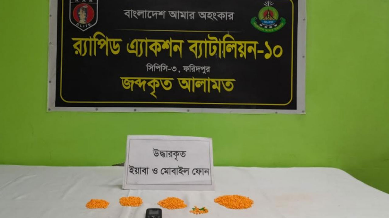ফরিদপুরের কোতোয়ালি থানার ভাঙা রাস্তার মোড়ে চেকপোস্ট বসিয়ে অভিযান চালিয়ে এক মাদক কারবারিকে আটক করেছে র্যাব। এক্সরে করে দেখা যায় তার পেটের ভেতর থেকে ২ হাজার ৩৫ পিস ইয়াবা ট্যাবলেট রয়েছে। এর আনুমানিক মূল্য প্রায় ৬ লাখ ১০ হাজার টাকা।