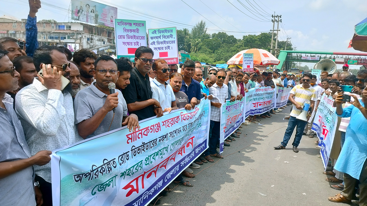 মানিকগঞ্জের সড়ক বিভাজকের কারণে চরম ভোগান্তিতে স্থানীয়রা