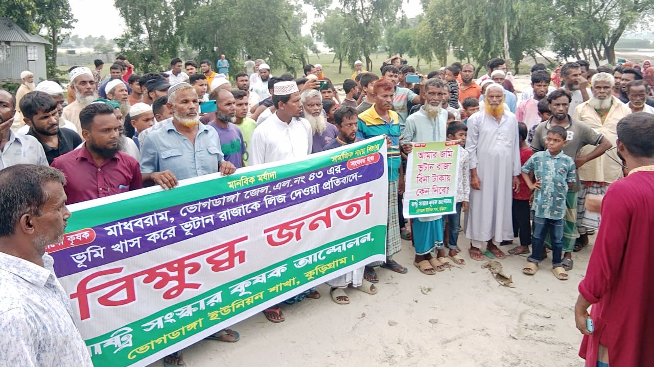 কুড়িগ্রামে কৃষিজমি ভুটানকে লিজ দেওয়ার সিদ্ধান্তে কৃষকদের বিক্ষোভ