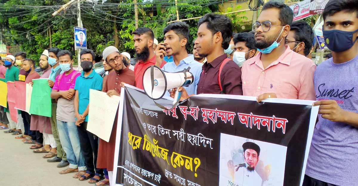 ইসলামি বক্তা আবু ত্ব-হা মুহাম্মদ আদনান ও তার তিন সঙ্গী ৬ দিন ধরে নিখোঁজ রয়েছেন। তাদের সন্ধানের দাবিতে বুধবার (১৬ জুন) সাড়ে ৫টার দিকে শহরের সাতমাথায় সচেতন তরুণ সমাজের ব্যানারে মানববন্ধন হয়।