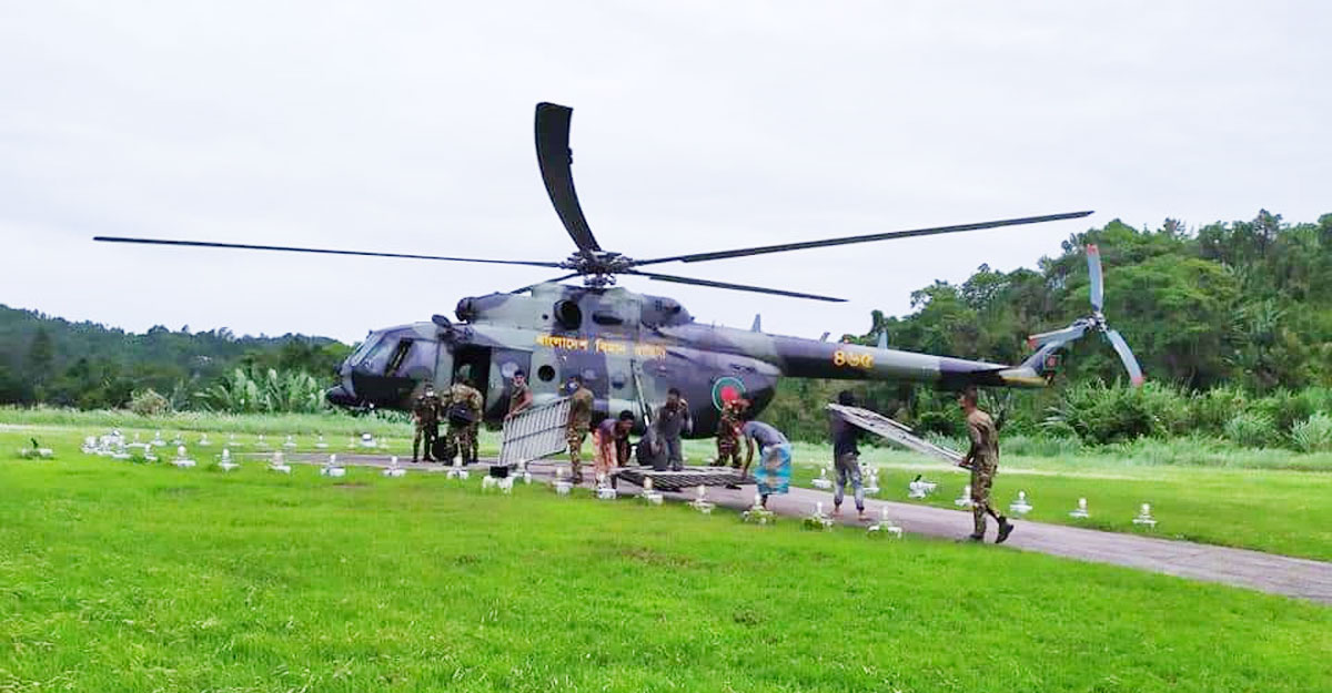 পরে খবর পেয়ে সেনাবাহিনীর সদস্যরা হেলিকপ্টারে করে ওষুধপথ্যসহ বিশুদ্ধ খাবার পানি পৌঁছে দেয় এবং আক্রান্তদের চিকিৎসা প্রদানে সেখানে একটি ফিল্ড হাসপাতাল তৈরি করে।