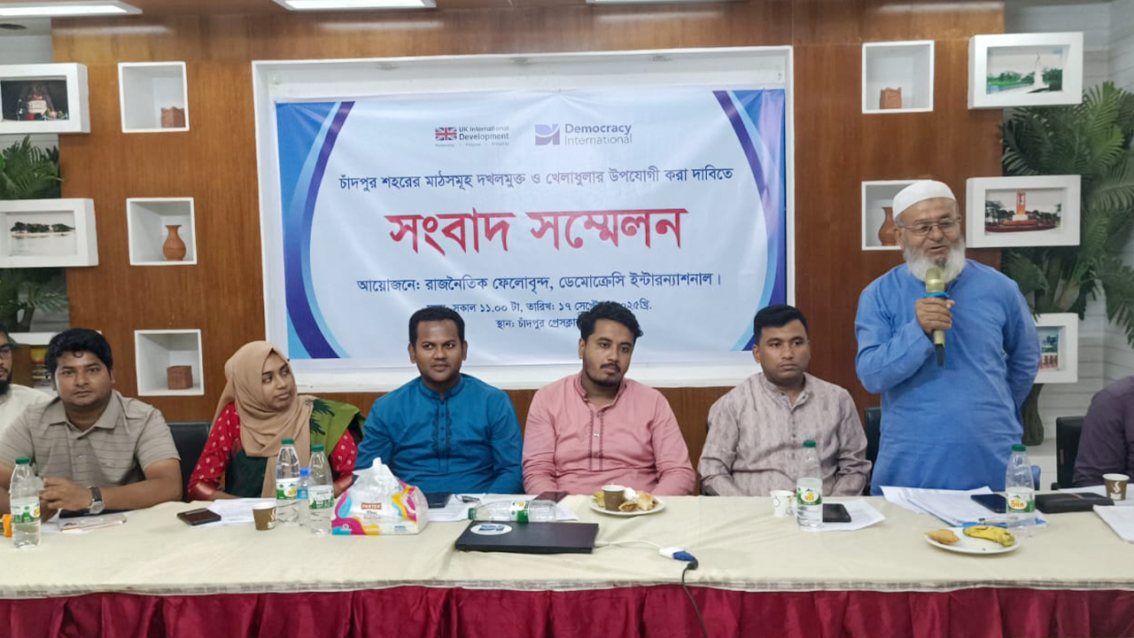 চাঁদপুর শহরের খেলার মাঠগুলো দখলমুক্ত ও খেলাধুলার উপযোগী করার দাবিতে সংবাদ সম্মেলন অনুষ্ঠিত হয়েছে।