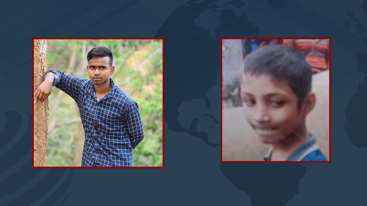 বামে শার্ট পরা নিখোঁজ ইসমাইল (১৭), ডানে মৃত উদ্ধার হওয়া শিশু হুমায়ুন (১২)