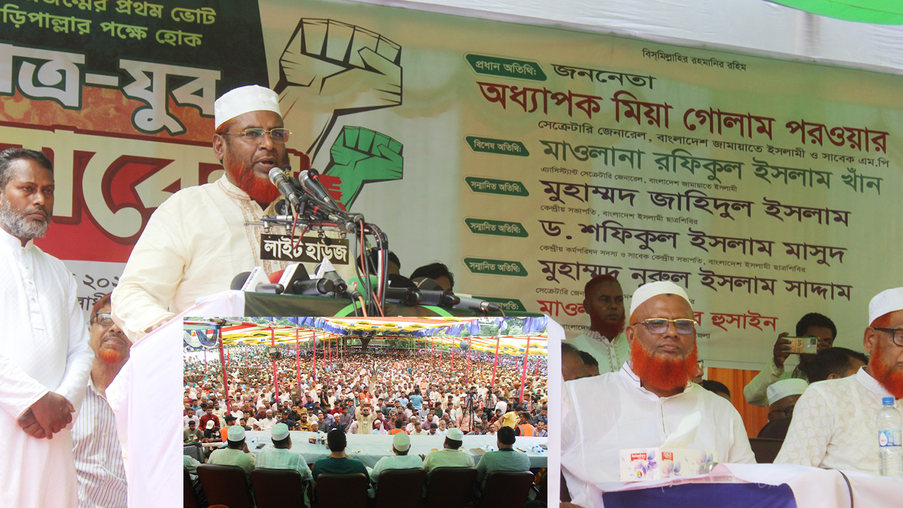 বাংলাদেশ জামায়াতে ইসলামীর সেক্রেটারি জেনারেল ও সাবেক এমপি অধ্যপক মিয়া গোলাম পরওয়ার বলেছেন, আগামী নির্বাচনে খুনি, চাঁদাবাজ ও মাস্তানদের সঙ্গে নতুন ভোটারদের লড়াই হবে। সুতরাং যে তরুণরা ফ্যাসিবাদকে বিদায় করেছে সেই তরুণরাই আগামীতেও দেশ পরিচালনার দায়িত্ব দিতে ভুল করবে না। ছাত্র-যুবকদের নেতৃত্বেই আগামী নির্বাচনে ভোট বিপ্লবের মাধ্যমে একটি নতুন মানবিক ও সাম্যের বাংলাদেশ গড়তে সকলের প্রতি আহ্বান জানাই।