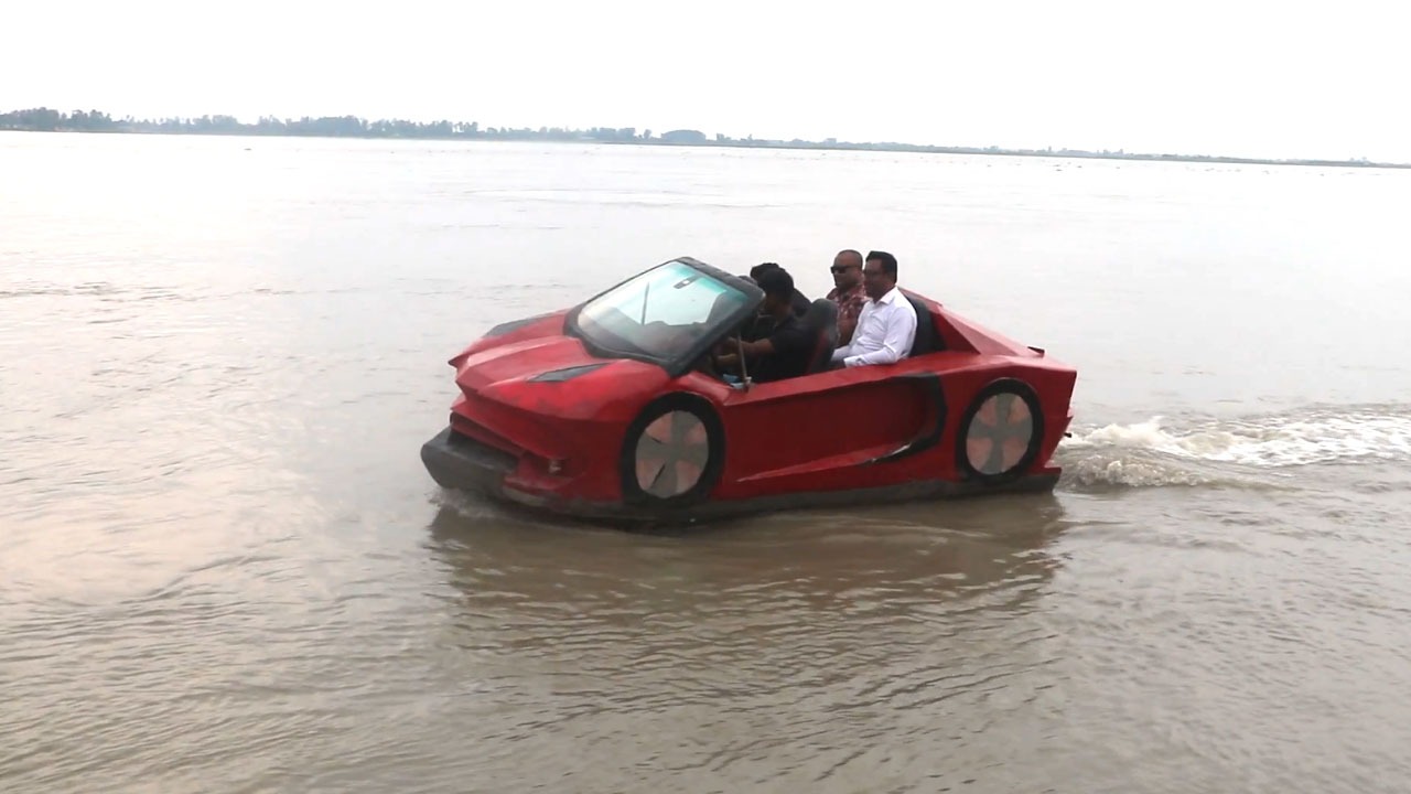 রাস্তা ছেড়ে এবার গাড়ি ছুটছে নদীপথে। গাইবান্ধার ফুলছড়ি উপজেলার দশম শ্রেণির শিক্ষার্থী রাহাত খন্দকার তৈরি করেছেন এক অভিনব ভাসমান যান। যা বানানো হয়েছে বিলাসবহুল স্পোর্টস কার ল্যাম্বরগিনির আদলে। নৌযানটি চালকসহ পাঁচজন যাত্রী নিয়ে নির্বিঘ্নে ছুটে চলছে উত্তাল ব্রহ্মপুত্রের বুকে।