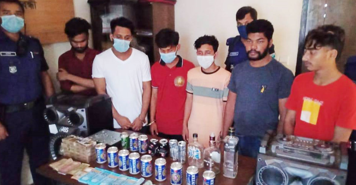 রূপগঞ্জ থানা পুলিশের ভারপ্রাপ্ত কর্মকর্তা (ওসি) এ এফ এম সায়েদ বলেন, রাজধানী উন্নয়ন কর্তৃপক্ষের (রাজউক) অধীনে নির্মাণাধীন রূপগঞ্জের পূর্বাচল নতুন শহর প্রকল্পের অস্থায়ী একটি রেস্টুরেন্টে দীর্ঘ দিন ধরে মাদকের আসর, ডিজে পার্টি, জুয়ার আড্ডা ও অসামাজিক কার্যকলাপ চলছিল। খবর পেয়ে সেখানে অভিযান চালিয়ে ২৪ জনকে আটক করা হয়। এ সময় তাদের কাছ থেকে ৯ ক্যান বিদেশি বিয়ার, ৩ বোতল বিদেশি মদ, নগদ ২ লাখ ৪৭ হাজার ৫০০ টাকাসহ বিপুল পরিমাণ জুয়া খেলার সরঞ্জাম উদ্ধার করা হয়।