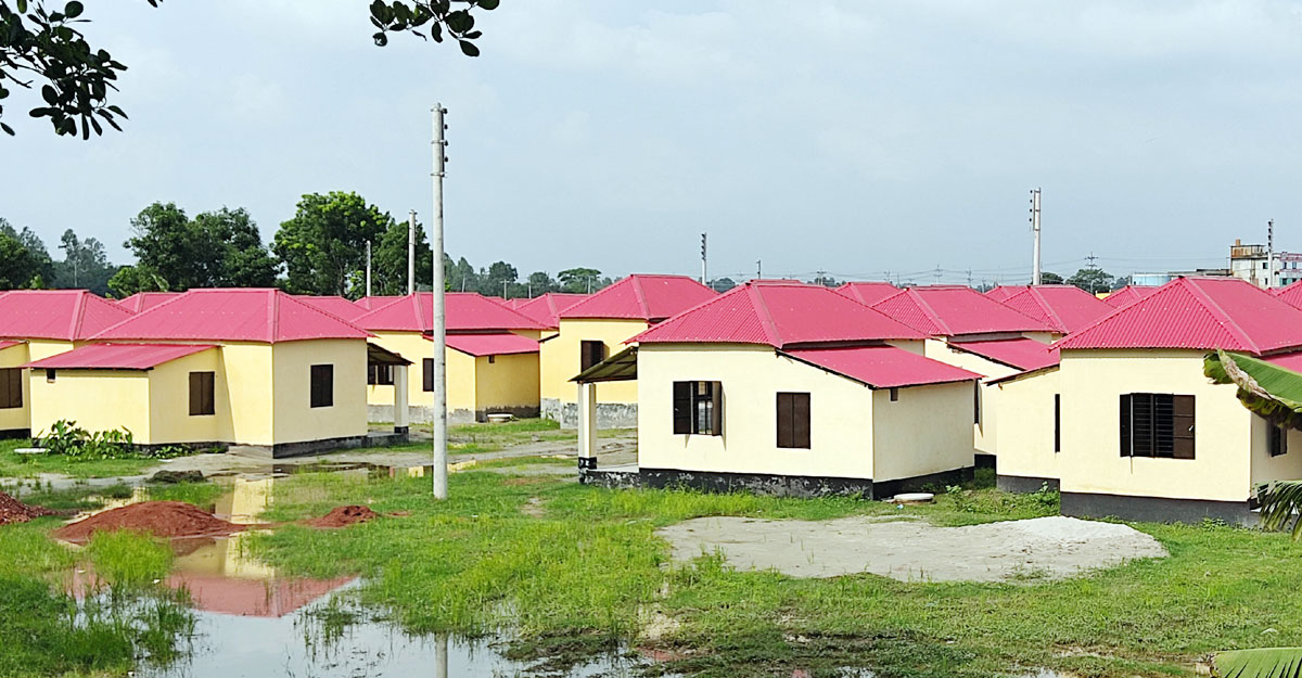 সরেজমিনে সদর উপজেলার রসুলপুর ও চিলাবাড়ীতে গিয়ে দেখা যায়, ঘরগুলোর নির্মাণ কাজ শেষ। কোথাও কোথাও এখনও রঙয়ের কাজ বাকি রয়েছে। ঘরগুলো নোংরা। সেখানে জুয়া খেলার তাস, মাদক সেবনের সামগ্রী পড়ে রয়েছে। টয়লেটগুলো অপরিষ্কার, সারিবদ্ধ ঘরের সামনে পানি জমে রয়েছে। কোনো কোনো সেফটিক ট্যাংকের ঢাকনাও লাগানো হয়নি। উঠানের গাছ কাটা হলেও বড় বড় শিকড় এখনো অপসারণ করা হয়নি।