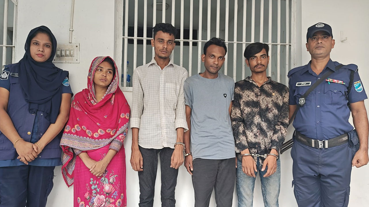 গ্রেপ্তারকৃতরা হলেন- শরিফুল (২৫), জয়নাল (২৫), কাওসার হোসেন কনক (২০) ও আনমনা ওরফে মোহনা।