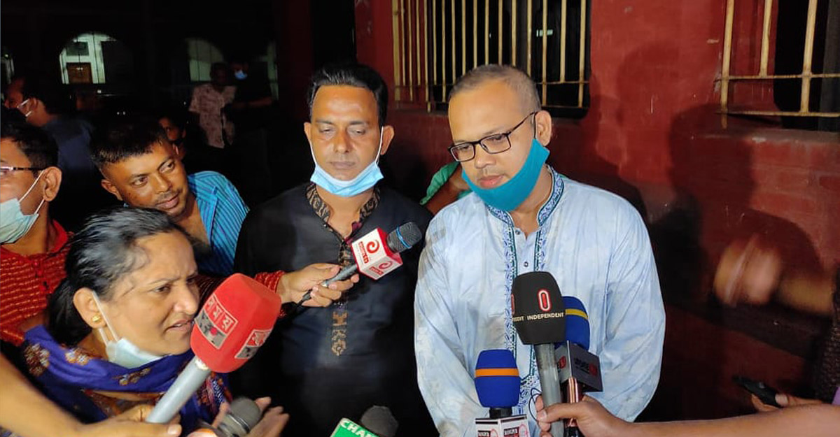সাংবাদিকদের সঙ্গে কথা বলছেন ত্ব-হার মা-মামা