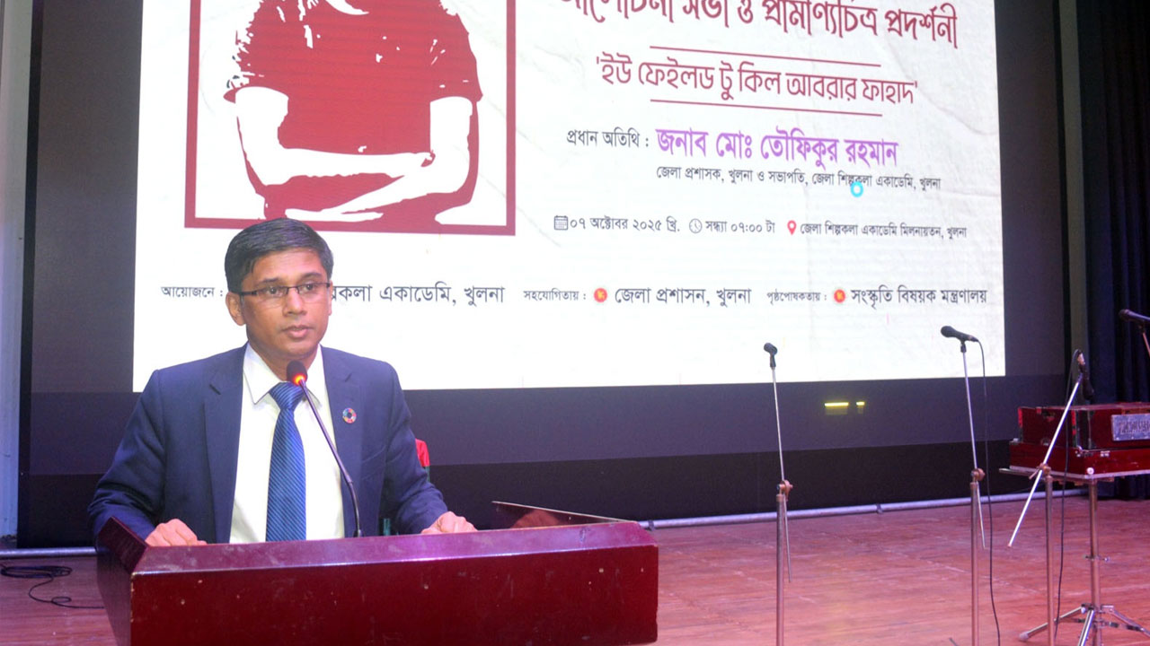 শহীদ আবরার ফাহাদের ষষ্ঠ মৃত্যুবার্ষিকী উপলক্ষ্যে গতকাল খুলনা জেলা শিল্পকলা একাডেমি অডিটোরিয়ামে আয়োজিত আলোচনা সভা ও প্রামাণ্যচিত্র প্রদর্শনীতে প্রধান অতিথির বক্তব্যে তিনি এসব কথা বলেন।