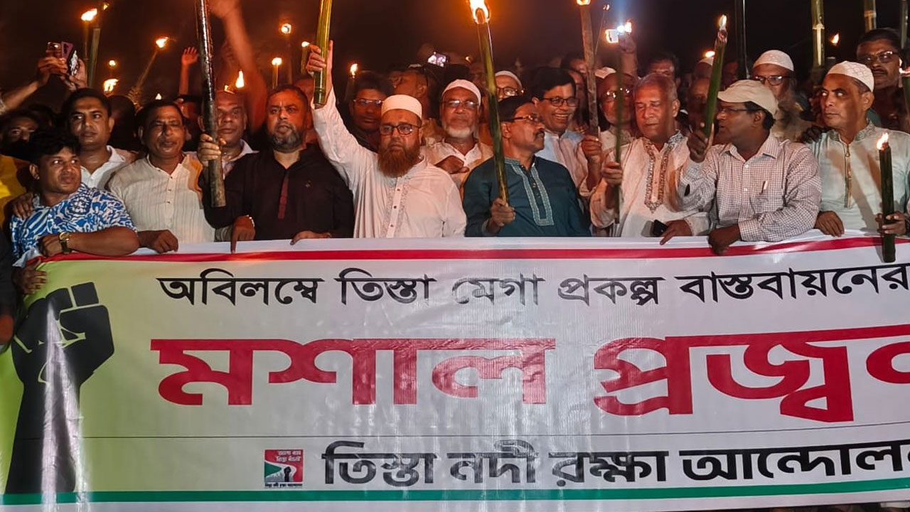 তিস্তা মহাপরিকল্পনার দ্রুত বাস্তবায়নের দাবিতে কুড়িগ্রামে মশাল প্রজ্জ্বলন
