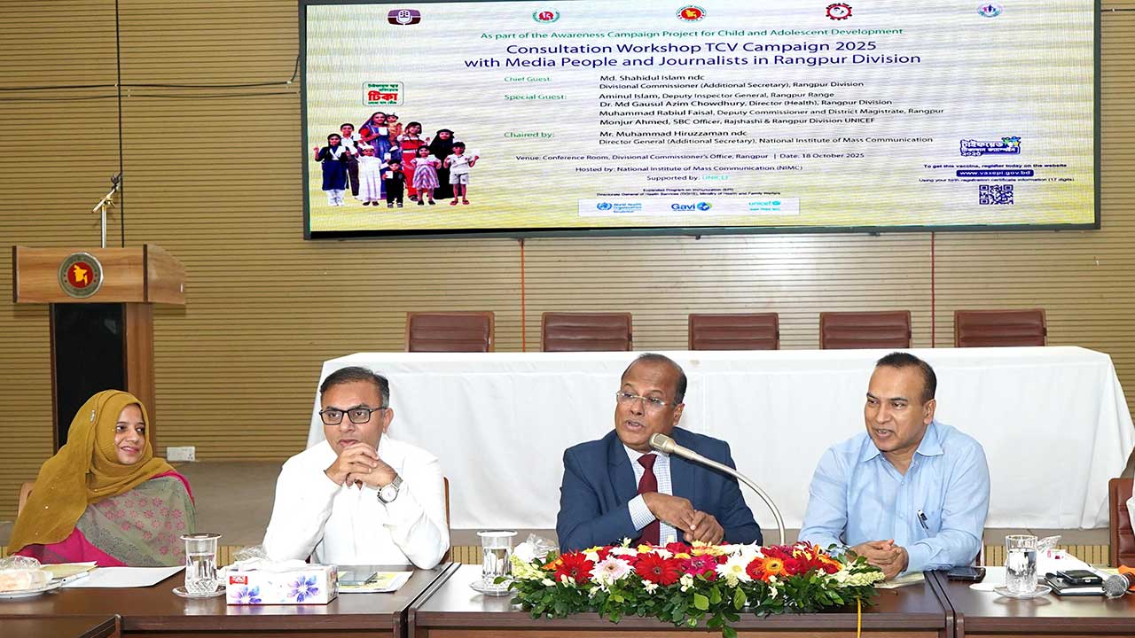 জাতীয় গণমাধ্যম ইনস্টিটিউটের আয়োজনে ও ইউনিসেফের সহযোগিতায় রংপুর বিভাগীয় কমিশনারের কার্যালয়ের সেমিনার কক্ষে অনুষ্ঠিত হয় এ কর্মশালা। এতে সভাপতিত্ব করেন জাতীয় গণমাধ্যম ইনস্টিটিউটের মহাপরিচালক মুহাম্মদ হিরুজ্জামান।
