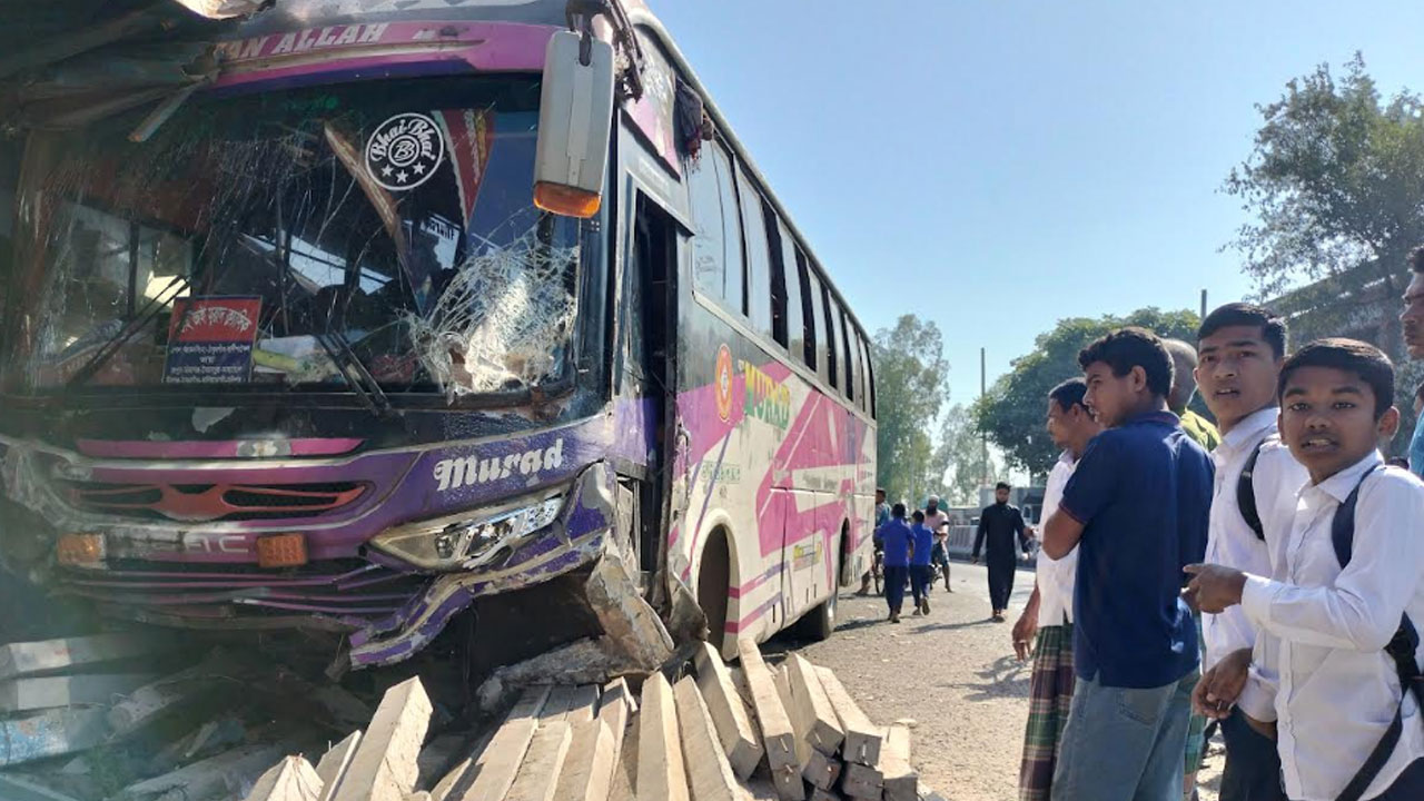 সরেজমিনে দেখা গেছে, বাসটি বাম দিকে যাওয়ার কথা থাকলেও ডান দিকে সড়কের ধারে রাখা পিলারে আটকে আছে। উৎসুক লোকজন, স্কুল শিক্ষার্থীরা বাসটি ঘিরে রেখেছেন। এতে সড়কের একাংশ সংকুচিত হওয়ায় আবারও দুর্ঘটনা শঙ্কা রয়েছে। সকাল সাড়ে ৯টা পর্যন্ত সেখানে কোনো পুলিশ সদস্য দেখা যায়নি।