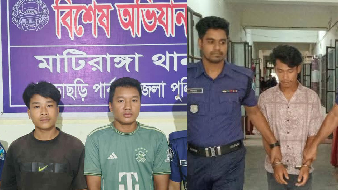 এ ঘটনায় এখন পর্যন্ত তিন যুবককে গ্রেপ্তার করেছে পুলিশ। বৃহস্পতিবার দুপুরে রিমন ত্রিপুরা (২২) নামে একজনকে গ্রেপ্তার করা হয়। এর আগে বুধবার সন্ধ্যায় স্থানীয়রা রনি বিকাশ ত্রিপুরা (৩২) ও ডেটল বাবু ত্রিপুরা (১৯) নামে দুইজনকে আটক করে মাটিরাঙ্গা থানায় হস্তান্তর করে। এ ঘটনায় অভিযুক্তদের মধ্যে সুমন ত্রিপুরা (১৯) এখনো পলাতক রয়েছে।