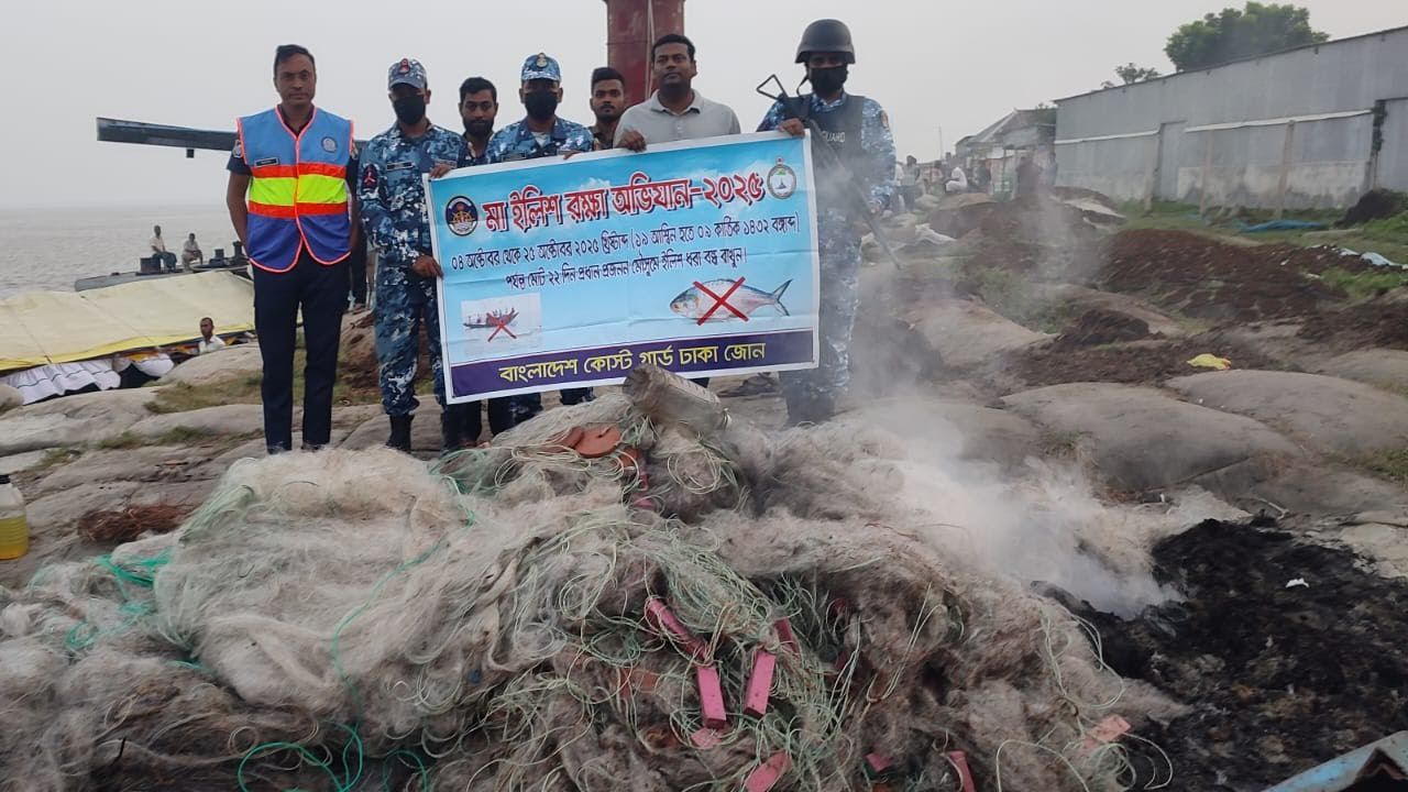 জেলা মৎস্য অফিস সূত্রে জানা যায়, সরকারের নিষেধাজ্ঞা অনুযায়ী গত ৪ অক্টোবর থেকে নদীতে সব ধরনের মাছ ধরা বন্ধ রয়েছে। এ সময় নিষেধাজ্ঞা অমান্য করে অনেক অসাধু জেলে ও মৌসুমি জেলেরা মা ইলিশ শিকার করলে তাদেরকে আটক করে জেল জরিমানা করা হচ্ছে।