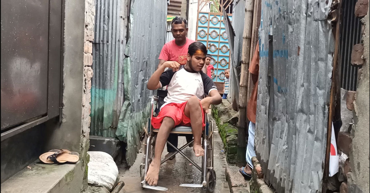 কাজল মিয়া ঝালমুড়ি ও চানাচুর বিক্রি করেন। সুযোগ পেলেই তার শারীরিক প্রতিবন্ধী ছেলে সাজনকে হুইলচেয়ারে বসিয়ে বেরিয়ে পড়েন ঘুরতে। কাজল মিয়ারও কষ্ট হয়। কারণ, দীর্ঘদেহী সন্তানকে কোলে করে একা একা বিছানা থেকে হুইলচেয়ারে বসাতে হয়। এদিকে সাজনের সব কাজেই যেন বাবাকেই চাই। শারীরিক প্রতিবন্ধী হলেও তার মুখে শুধু বাবা ডাকটা স্পষ্ট শোনা যায়।