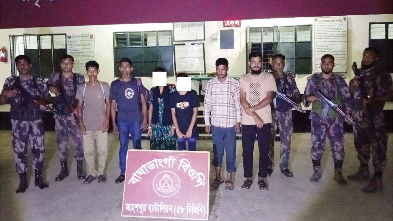 অপর এক অভিযানে বাঘাডাংগা বিওপির বিজিবি সদস্যরা ৬ জনকে আটক করে। এদের মধ্যে দুইজন শিশু। আটক ব্যক্তিরা অবৈধভবে সীমান্ত পেরিয়ে ভারতে প্রবেশের চেষ্টা করছিলেন বলে দাবি করেছে বিজিবি। আটকদের মহেশপুর থানায় সোপর্দ করা হয়েছে।