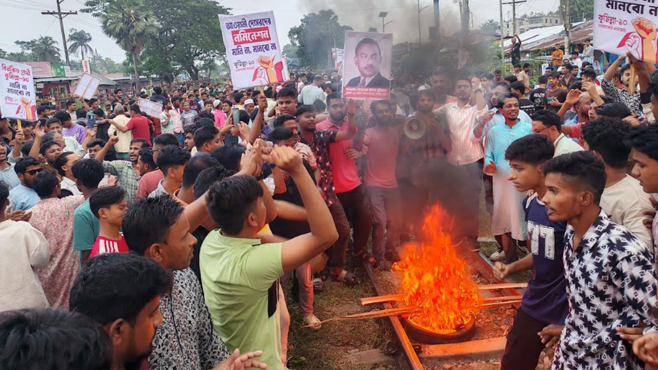 নাঙ্গলকোটে বিএনপির মনোনয়ন না পেয়ে রেলপথে টায়ার জ্বালিয়ে বিক্ষোভ