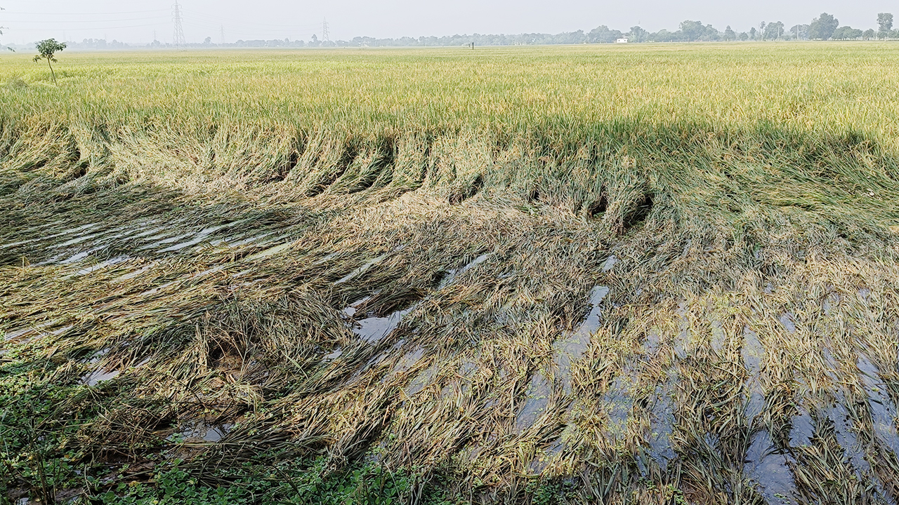 সরজমিনে দেখা গেছে, বৃষ্টিতে মাঠের ধান নুইয়ে পড়েছে। যদিও কোথাও কোথাও পানি নেমে গেছে, তবুও ধানের ব্যাপক ক্ষতি হয়েছে। আবার ভেজা পরিবেশে ধানে পোকা দেখা দিচ্ছে, ফলে নতুন করে কীটনাশক স্প্রে করতে হচ্ছে। এতে খরচ বাড়ছে। অন্যদিকে হাঁটু পানিতে ধান কাটতে হচ্ছে বলে শ্রমিকরাও বাড়তি মজুরি দাবি করছেন।