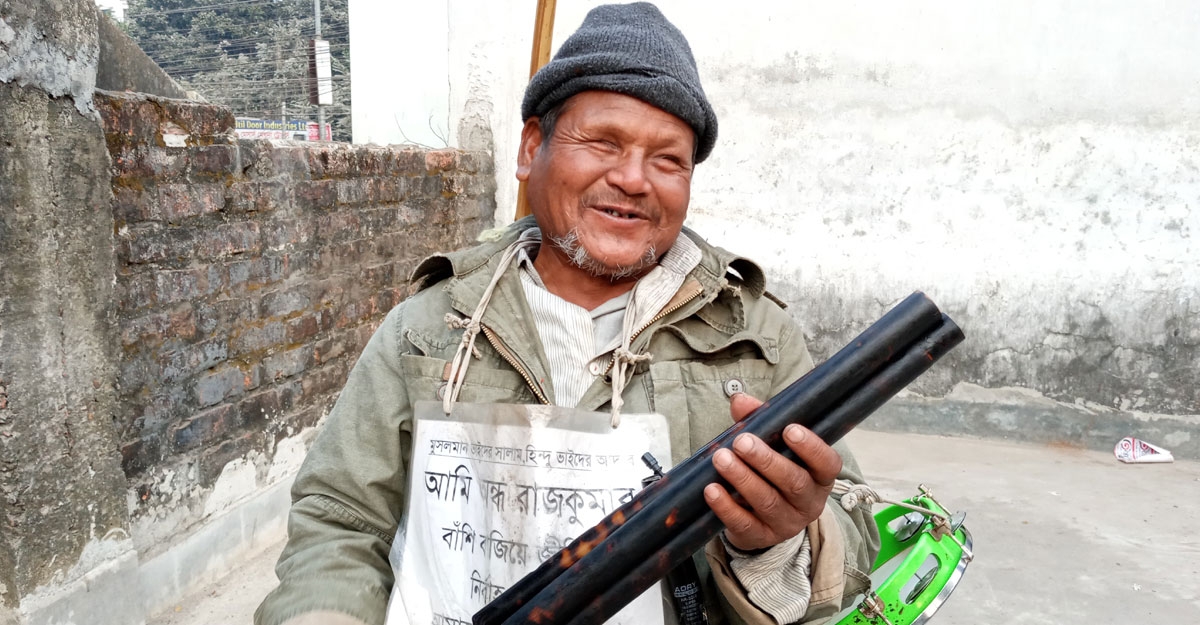 বৃহস্পতিবার (৭ জানুয়ারি) দুপুরে রংপুর নগরের স্টেশন রোডে দৈনিক দাবানল মোড়ে দেখা মেলে বংশীবাদক রাজকুমারের। আপন মনে বাঁশি বাজিয়ে হেঁটে চলেছেন তিনি। বুকে ঝুলানো কাগজে লেখা - ‘আমি অন্ধ রাজকুমার। বাঁশি বাজিয়ে জীবিকা নির্বাহ করি। আমাকে সাহায্য করুন’। তার এই সাহায্য প্রার্থনা আর বাঁশির সুরে মুগ্ধ মানুষেরা হাত বাড়িয়ে যা দেন তাই জীবিকার অংশ।