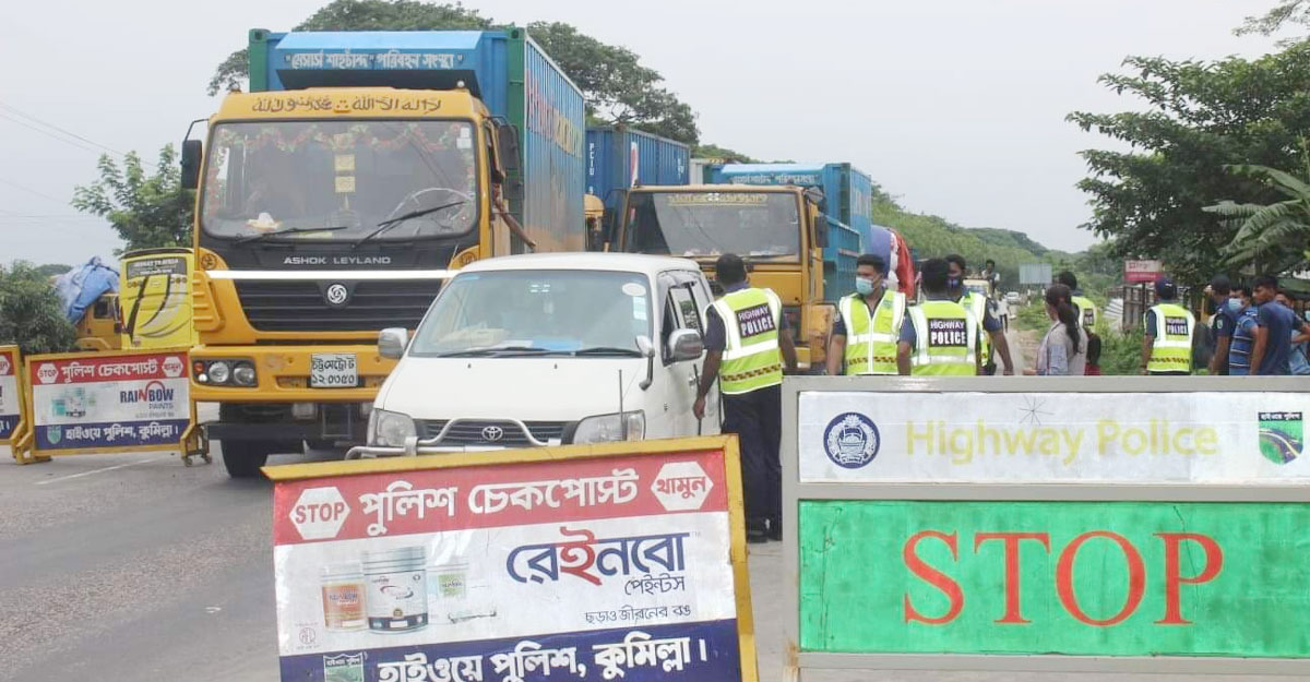 ঢাকা-চট্টগ্রাম মহাসড়কের কুমিল্লার চন্দিনা ও দাউদকান্দিতে চেকপোস্ট বসিয়ে ফিরিয়ে দেওয়া হচ্ছে ঢাকামুখী সব গণপরিবহন। মঙ্গলবার (২২ জুন) সকাল থেকে এভাবেই কঠোর অবস্থানে রয়েছে কুমিল্লা হাইওয়ে পুলিশ।