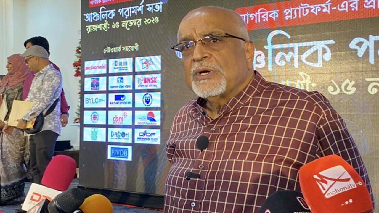 শনিবার (১৫ নভেম্বর) দুপুরে রাজশাহীতে ‘নাগরিক প্ল্যাটফর্মের প্রাক-নির্বাচনী উদ্যোগ’-এর রাজশাহী আঞ্চলিক পরামর্শ সভায় অংশ নিয়ে সাংবাদিকদের এ কথা বলেন তিনি।