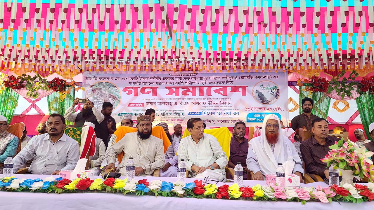 লক্ষ্মীপুরের রামগতি ও কমলনগর উপজেলায় মেঘনা নদীর তীর রক্ষায় ৩১শ কোটি টাকার বাঁধ প্রকল্প দ্রুত বাস্তবায়নের দাবিতে গণসমাবেশ অনুষ্ঠিত হয়েছে। রোববার (১৬ নভেম্বর) সন্ধ্যায় উপজেলার কাদিরপন্ডিতেরহাট বিদ্যালয় মাঠে এ সমাবেশ হয়।