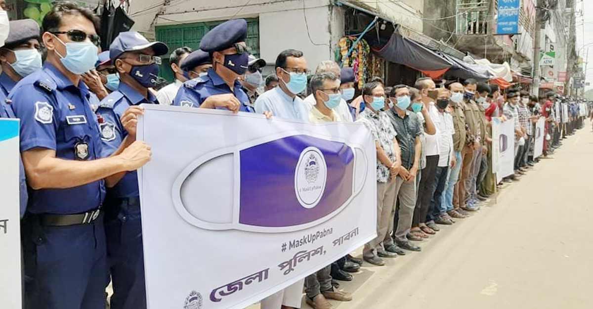 পাবনায় পুলিশের মাস্ক আপ ক্যাম্পেইন