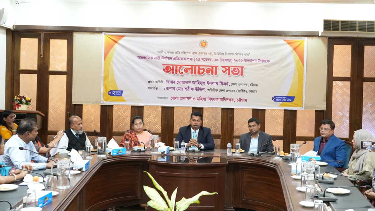 এর আগে চট্টগ্রাম জেলা প্রশাসন ও মহিলা বিষয়ক অধিদপ্তরের যৌথ উদ্যোগে সকাল ৯টা ৩০ মিনিটে সার্কিট হাউস প্রাঙ্গণ থেকে বর্ণাঢ্য র্যালি বের করা হয়। র্যালি শেষে সার্কিট হাউস সম্মেলন কক্ষে “নারী ও কন্যার প্রতি সহিংসতা বন্ধে ঐক্যবদ্ধ হই, ডিজিটাল নিরাপত্তা নিশ্চিত করি”—এই প্রতিপাদ্য নিয়ে আলোচনা সভা অনুষ্ঠিত হয়।