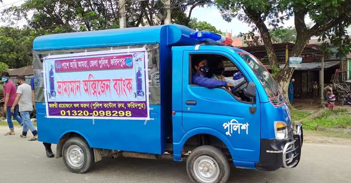ফরিদপুরে ভ্রাম্যমাণ অক্সিজেন ব্যাংক চালু করল পুলিশ