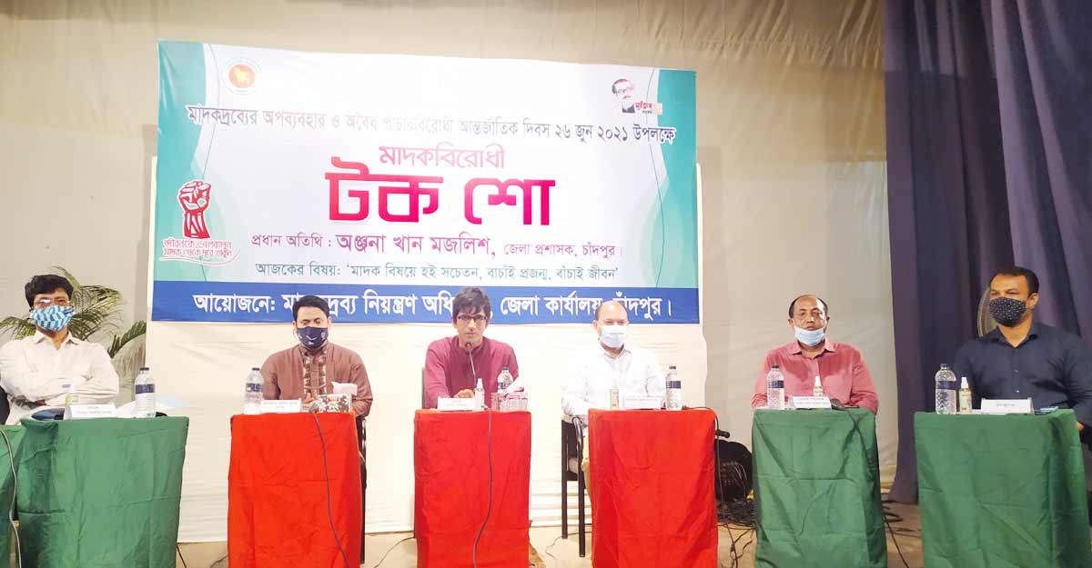 ‘মাদক বিষয়ে হই সচেতন, বাঁচাই প্রজন্ম, বাঁচাই জীবন’ এই স্লোগানকে ধারণ করে চাঁদপুরে মাদকদ্রব্যের অপব্যবহার ও অবৈধ পাচারবিরোধী আন্তর্জাতিক দিবস উপলক্ষে মাদকবিরোধী টক শো হয়েছে।