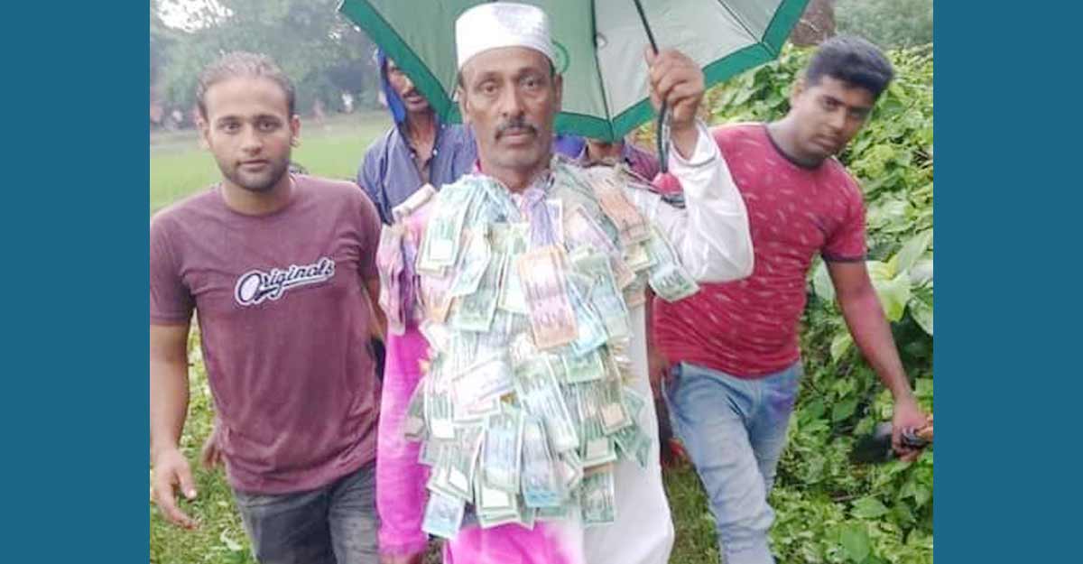 ফেসবুকের ছবিগুলোতে দেখা যায়, একেক বাড়িতে একেক রকমের টাকার মালা তার গলায় দেওয়া হয়েছে। এরমধ্যে একটি মালায় ৫০০ টাকার একটি ১০০ টাকার ১০টি নোট দেখা যায়। এছাড়া অন্যান্য মালাতে ১০, ২০, ৫০, ১০০, ২০০, ৫০০ ও ১০০০ টাকার নোটও দেখা গেছে। অন্তত ৩৫টি টাকার মালা তাকে দেওয়া হয়।