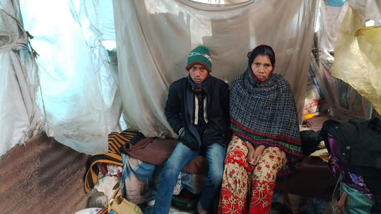 হাড়কাঁপানো শীতে পলিথিন ঘেরা ঘরে দিন কাটছে মা-ছেলের