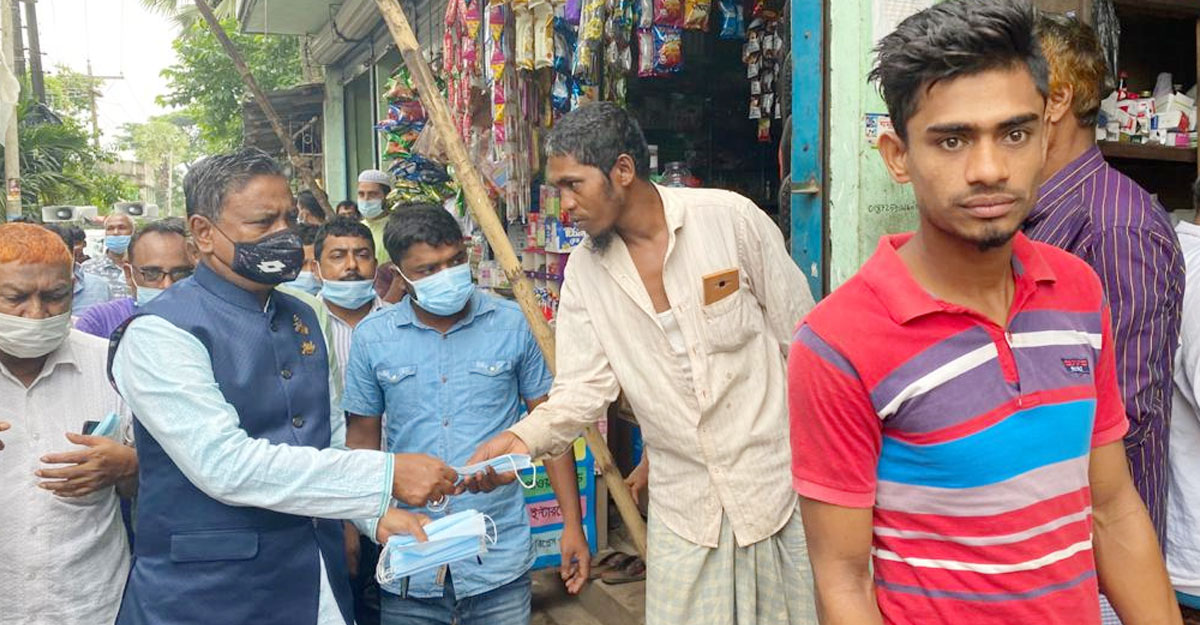 মাস্ক হাতে রাস্তায় কাদের মির্জা