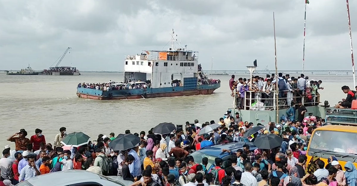 জানা গেছে, যাত্রীর চাপে শিমুলিয়া থেকে বাংলাবাজারমুখী ফেরিগুলোতে পণ্যবাহী ও জরুরি যানবাহন পারাপারে হিমশিম খাচ্ছে কর্তৃপক্ষ। কোনো ফেরি পাড়ে ভিড়লেই মানুষ হুমড়ি খেয়ে পড়ছে। ঠিকমতো গাড়ি পার হতে না পারায় ঘাট এলাকায় আটকা পড়েছে কয়েকশ যানবাহন।