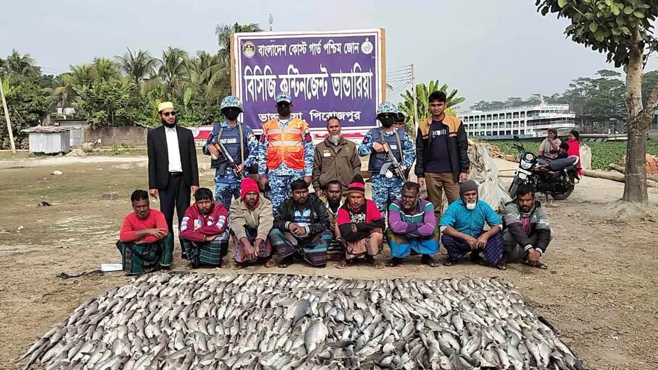 অভিযান শেষে কোস্টগার্ড সদস্যরা ট্রলারসহ আটক জেলেদের ভান্ডারিয়ায় নিয়ে আসেন। মঙ্গলবার দুপুর সাড়ে ১২টার দিকে ভান্ডারিয়া উপজেলা সহকারী কমিশনার (ভূমি) ভ্রাম্যমাণ আদালত পরিচালনা করেন। এ সময় বন্যপ্রাণী সংরক্ষণ আইন- ২০১২-এর ৩৪(খ) ধারায় অভিযুক্তদের বিরুদ্ধে ব্যবস্থা নিয়ে মোট ২০ হাজার টাকা জরিমানা করা হয়। জরিমানার অর্থ পরিশোধ শেষে তাদের মুক্তি দেওয়া হয়।