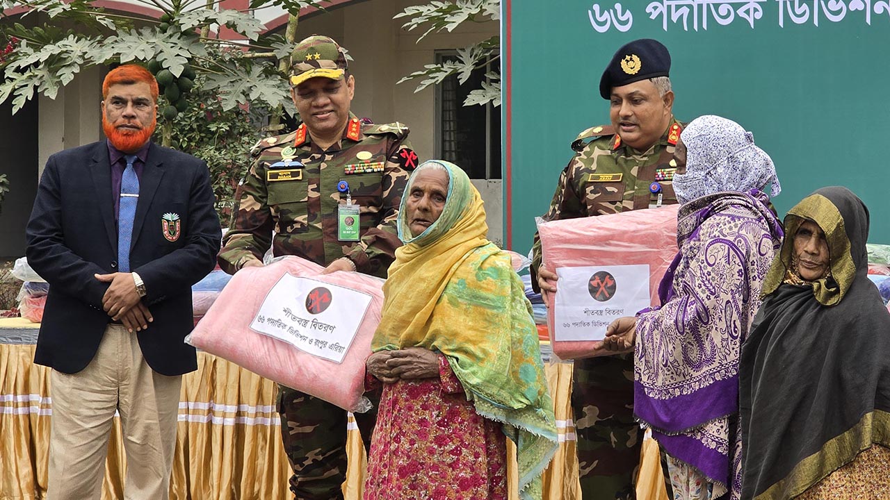 প্রতি বছরের মতো এবারও রংপুরে অস্বচ্ছল, ছিন্নমূল শীতার্ত মানুষে মাঝে শীতবস্ত্রের উষ্ণতা ছড়িয়ে দিয়েছে সেনাবাহিনী। রোববার (৪ জানুয়ারি) বিকেলে নগরীর উত্তম স্কুল এন্ড কলেজ মাঠে ১ হাজার ৫০ জনের হাতে উন্নতমানের কম্বল বিতরণ করা হয়। ৬৬ পদাতিক ডিভিশন এই আয়োজন করে।