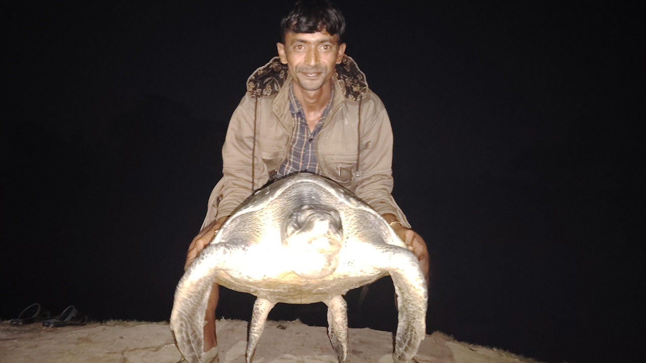 জেলের জালে ধরা পড়ল ৪০ কেজি ওজনের কচ্ছপ