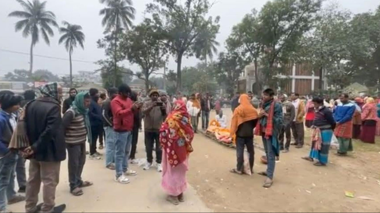 সিরাজগঞ্জের উল্লাপাড়া উপজেলায় বিরোধের জেরে এক হিন্দু নারীর সৎকার কাজে বাধা দেওয়ার অভিযোগ উঠেছে শ্মশানের দায়িত্বরত এক ব্যক্তির বিরুদ্ধে। এ ঘটনায় নিহত নারীর স্বজন ও স্থানীয়রা মরদেহ নিয়ে সোমবার (৫ জানুয়ারি) সকালে উপজেলা পরিষদ চত্বরে বিক্ষোভ করেছেন। বিক্ষোভ চলে সকাল ১০টা থেকে ১১টা পর্যন্ত। এরপর ওই নারী সৎকার সম্পন্ন হয়।