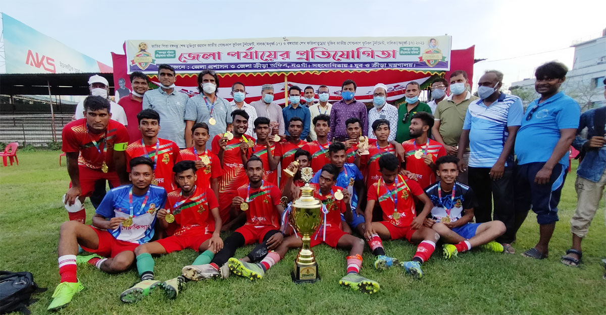 নওগাঁ প্রতিনিধি জানান, জাতির পিতা বঙ্গবন্ধু শেখ মুজিবুর রহমান জাতীয় গোল্ডকাপ ফুটবল টুর্নামেন্ট বালক (অনূর্ধ্ব-১৭) ও বঙ্গমাতা শেখ ফজিলাতুন্নেছা মুজিব জাতীয় গোল্ডকাপ ফুটবল টুর্নামেন্ট বালিকা (অনূর্ধ্ব-১৭) জেলা পর্যায়ের প্রতিযোগিতার চূড়ান্ত খেলা অনুষ্ঠিত হয়েছে। রোববার টুর্নামেন্টের বালিকা বিভাগে ধামইরহাট উপজেলা দল ২-০ গোলে পোরশা উপজেলাকে এবং বালক বিভাগে টাইব্রেকারে নওগাঁ সদর উপজেলা ৬-৫ গোলে পত্নীতলা উপজেলাকে হারিয়ে বিজয়ী হয়।
