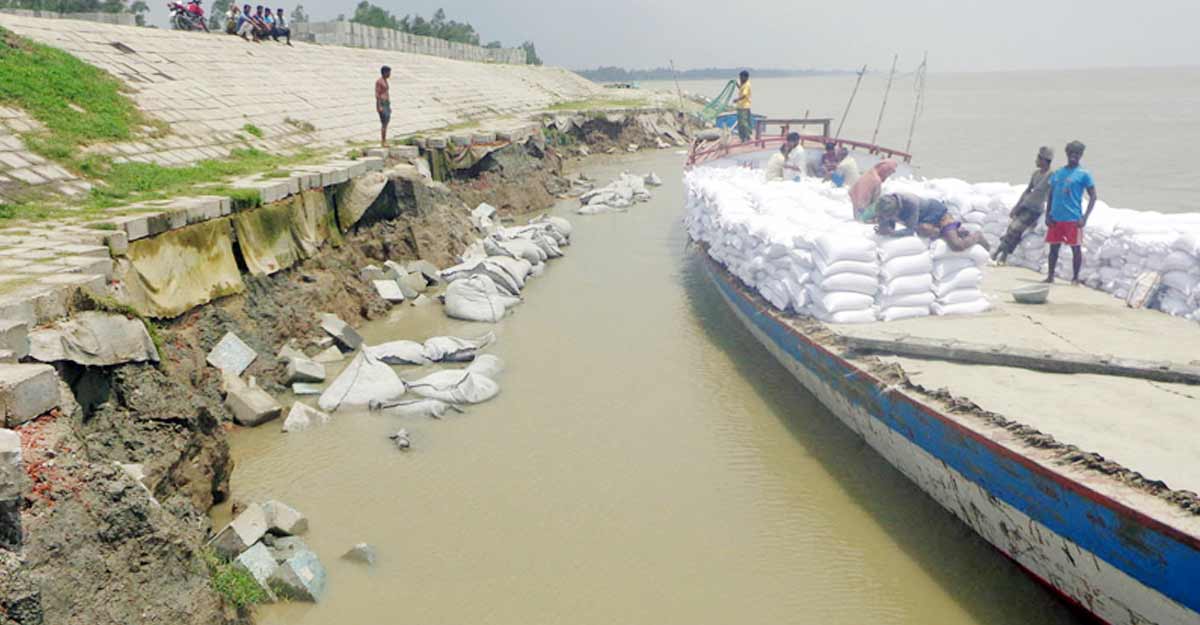 মঙ্গলবার (২৯ জুন) সকালে ইকোপার্ক এলাকায় মেসার্স শামিম এন্টারপ্রাইজ নামের একটি ঠিকাদারি প্রতিষ্ঠান বালুবোঝাই জিও ব্যাগ ধসে যাওয়া অংশে ফেলার কাজ শুরু করেছে।